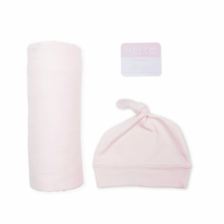 Hello World Bamboo Hat & Swaddle Blanket Set - Pink