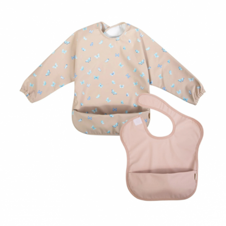 Butterfly-Blush Smock Bib Long & Short Sleeve Set