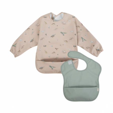 Dino-Mint Smock Bib Long & Short Sleeve Set