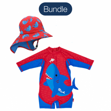 Swimsuit & Sun Hat- Shark- Size 2 to 3 years