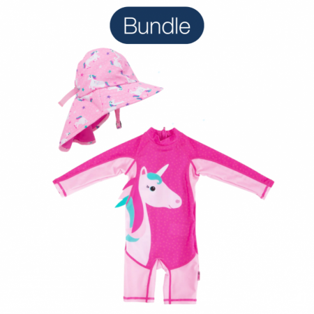 Swimsuit & Sun Hat- Unicorn - Size 6 to 12 Months