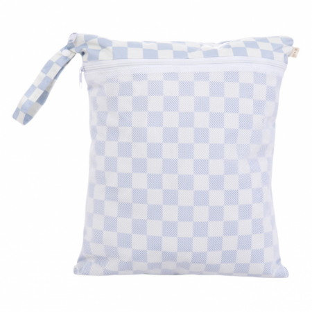 Dual-Compartment Wet-Dry Bag with Mesh Pocket - Blue Checker