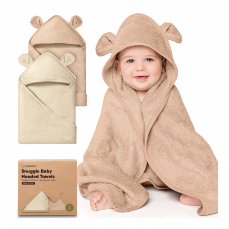 Suitable from newborn to 4 years+, our extra-large, super-soft, Bamboo Apron Baby Bath Towel is designed to be worn around your neck like an apron, which makes it easy to lift and snuggle your baby. The clever design keeps your clothes dry and your baby safe so you can both enjoy stress-free bathtime and baby swimming.